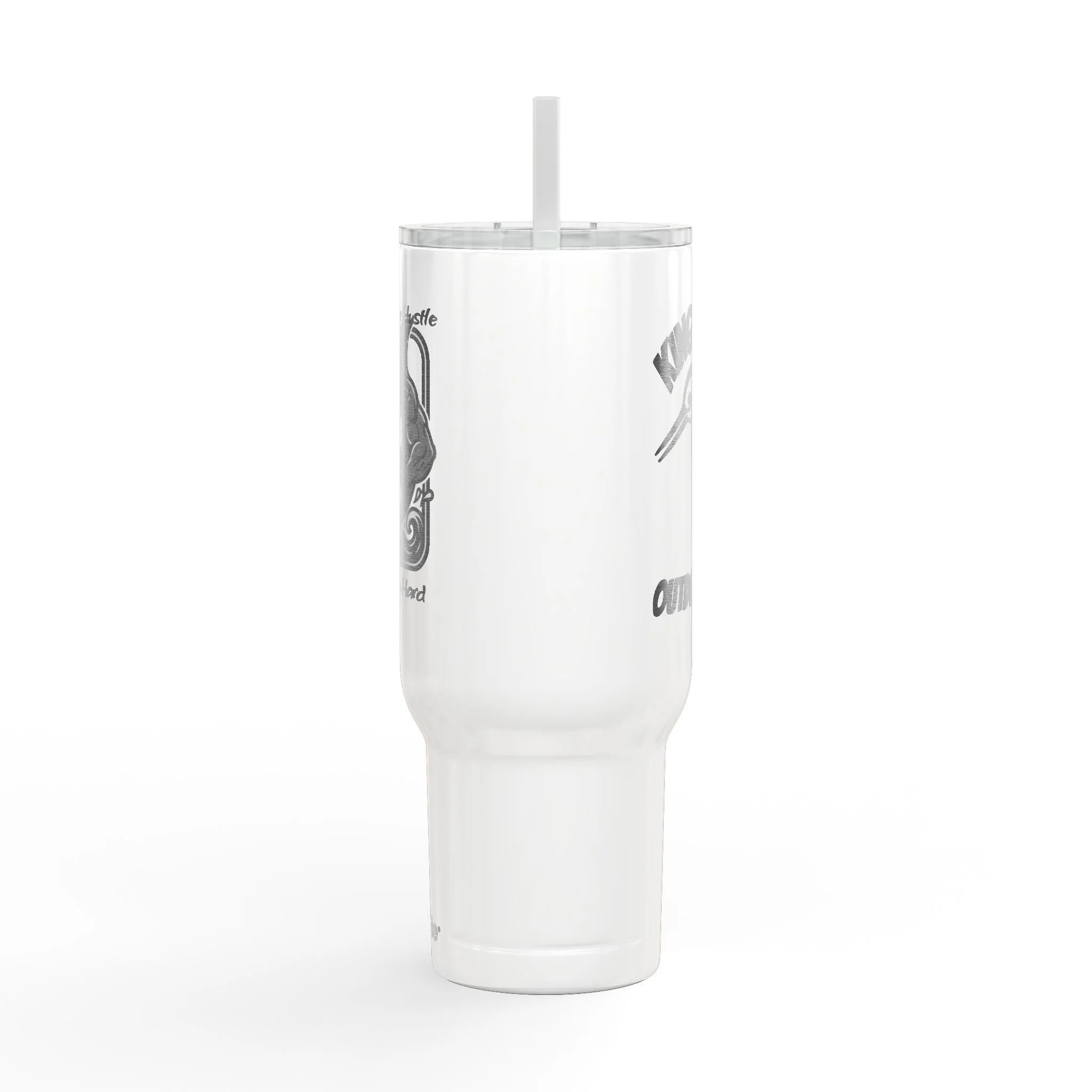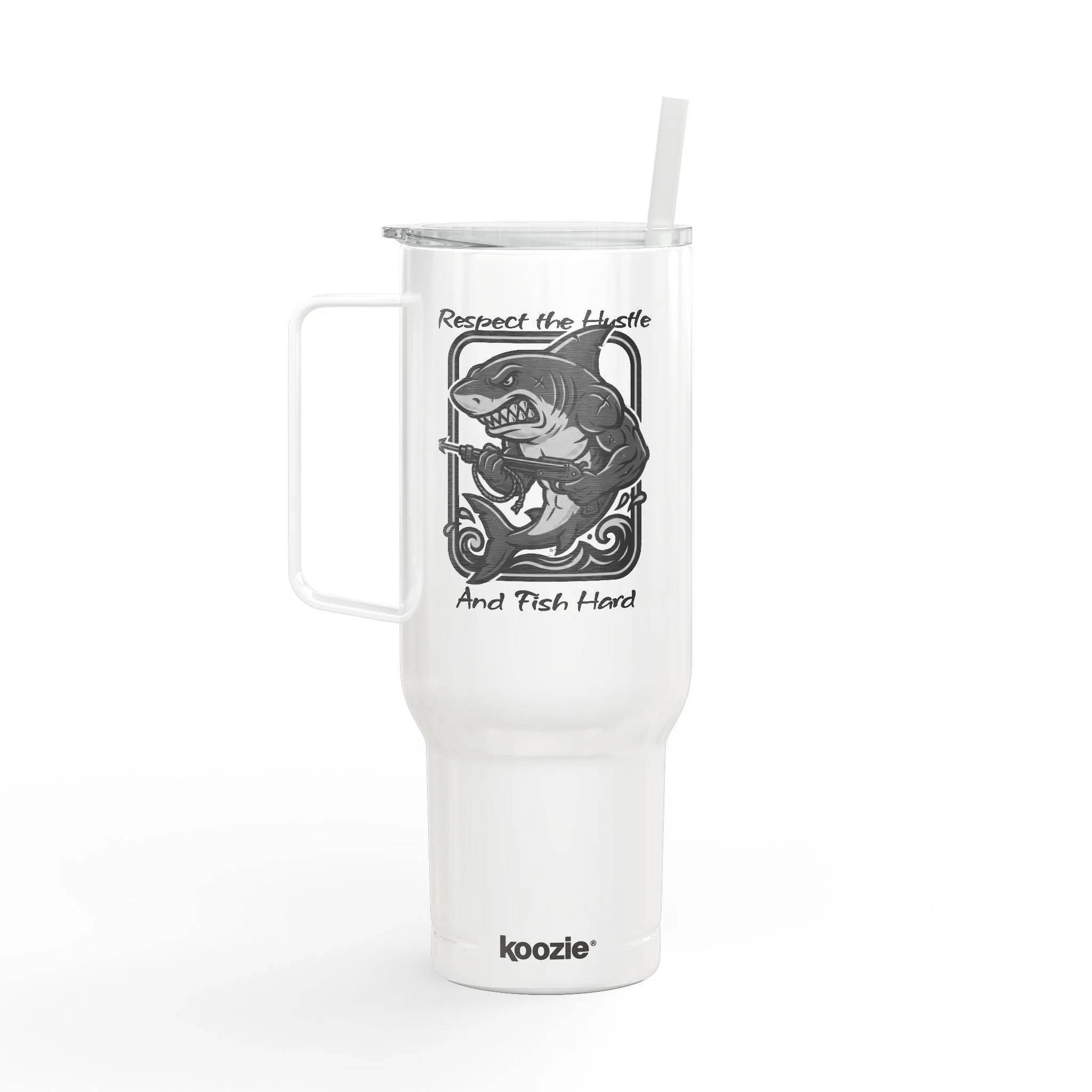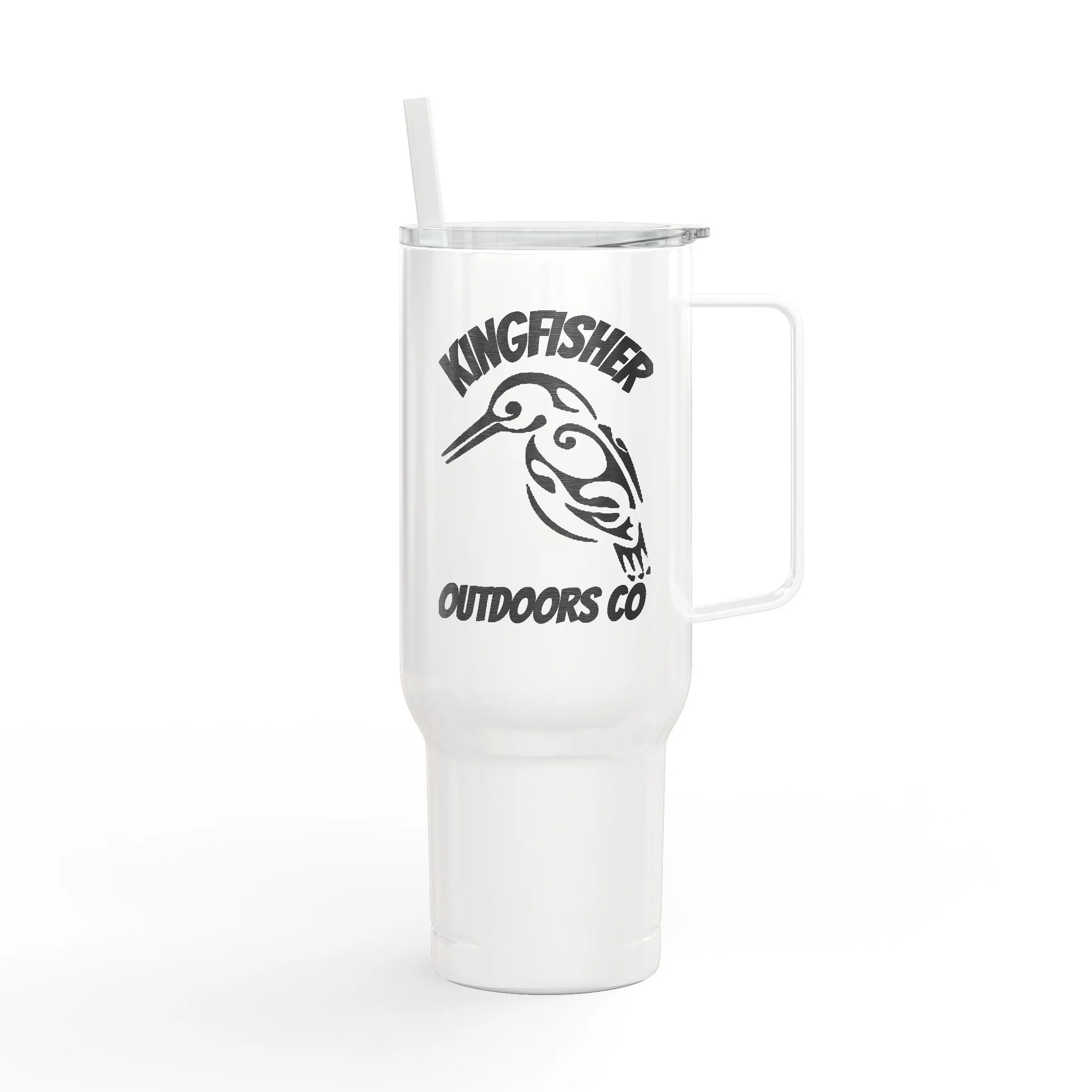 This 40oz insulated tumbler brings rugged outdoor spirit to everyday sips. Engraved artwork of a fierce fish wraps the glossy white body — bold, textured detail you can feel and see. The large comfort handle and tapered base make it easy to carry from camp chairs to car cup holders. Double-wall vacuum insulation keeps coffee steaming on early river runs and preserves iced drinks through long summer casts. A press-fit slider lid and matching straw help reduce spills while letting you hydrate hands-free on the trail. Built from recycled 304 stainless steel and recycled plastic, it’s made to withstand seasons of adventure while cutting down on waste. Hand wash recommended to protect the engraving and finish.