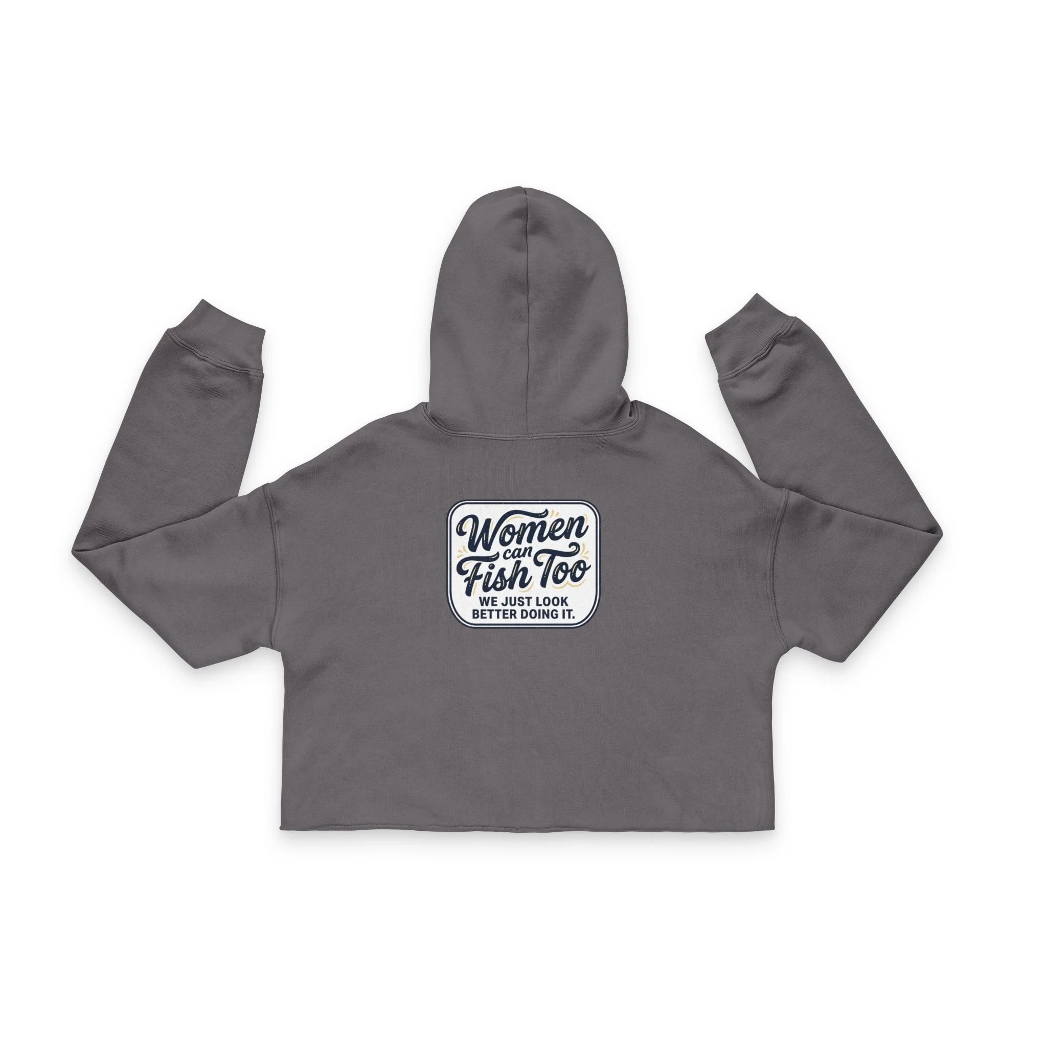 Cropped Hoodie — 'Women Fish Too' Retro Fishing Crop Top