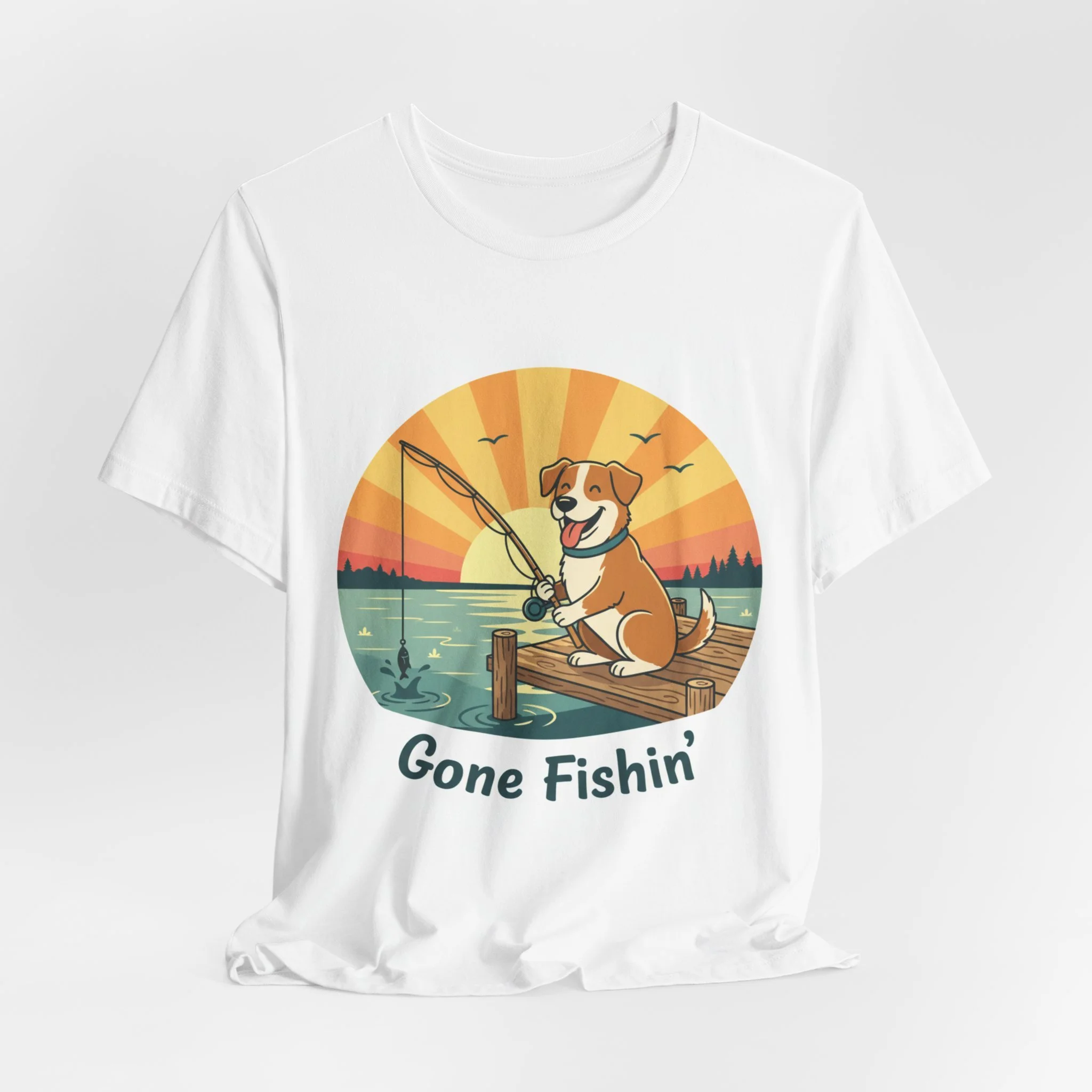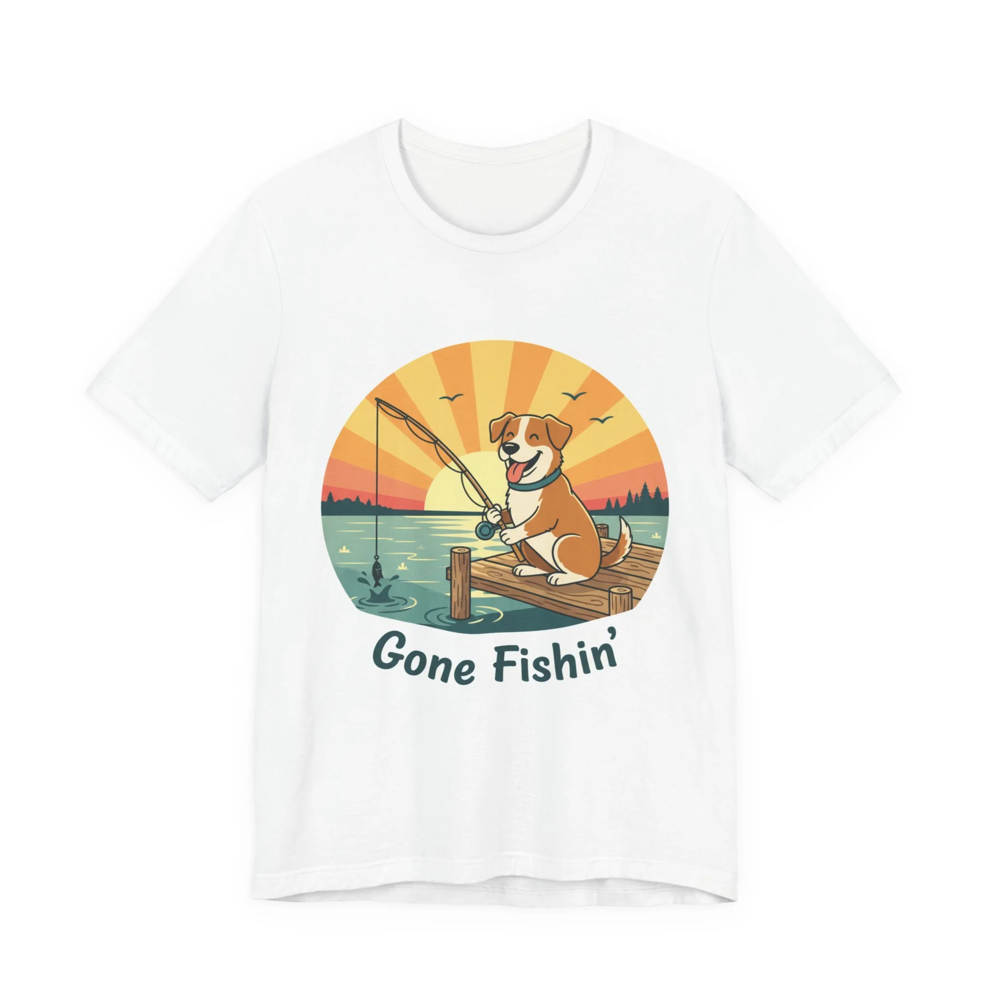 Gone Fishin' Tee — Cute Dog Fishing Graphic T-Shirt