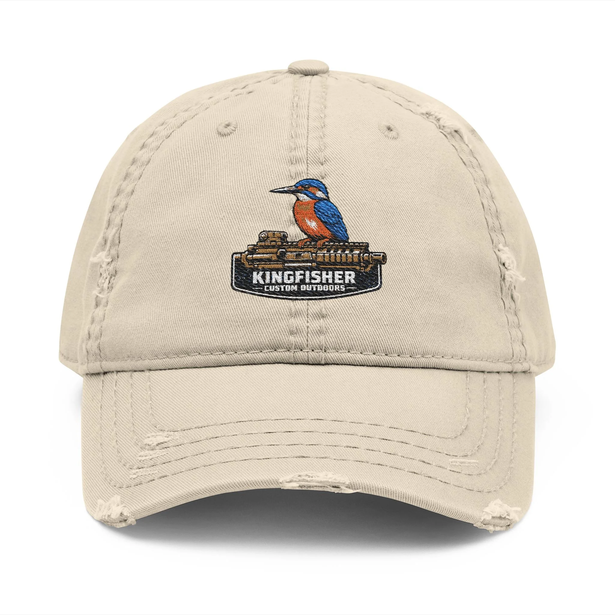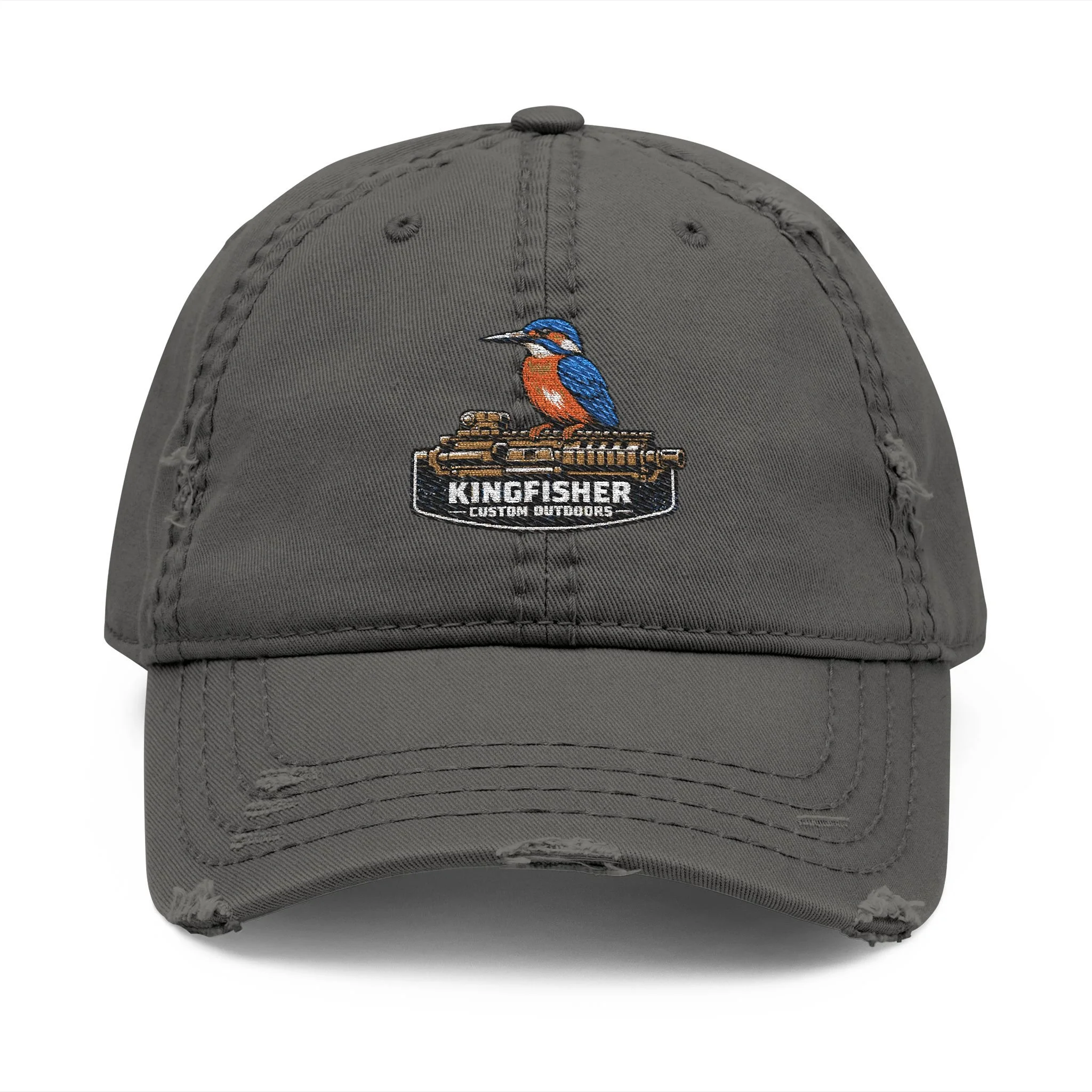 Kingfisher Embroidered Distressed Dad Hat — Vintage Bird Baseball Cap