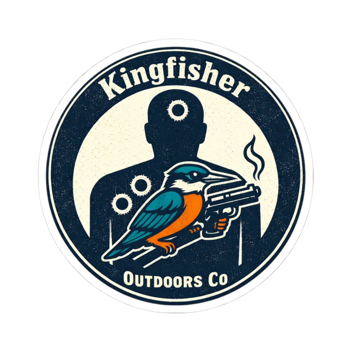 Kingfisher Outdoors Co. Round Sticker — Retro Kingfisher Hunting Logo