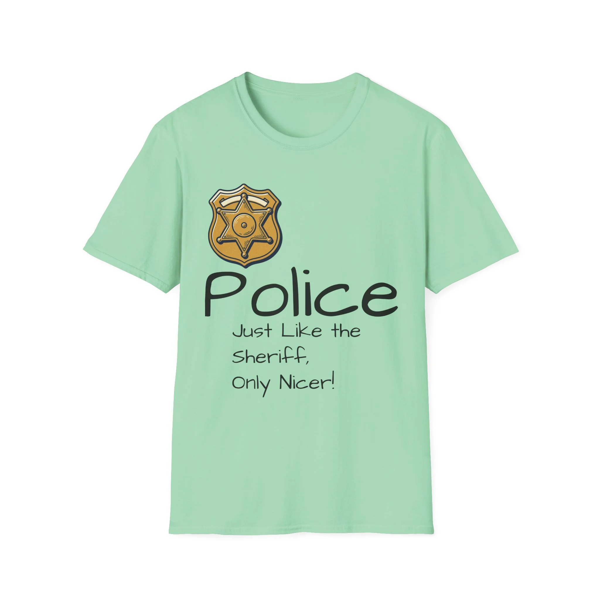 Police Badge T-Shirt — "Police: Just Like the Sheriff, Only Nicer"